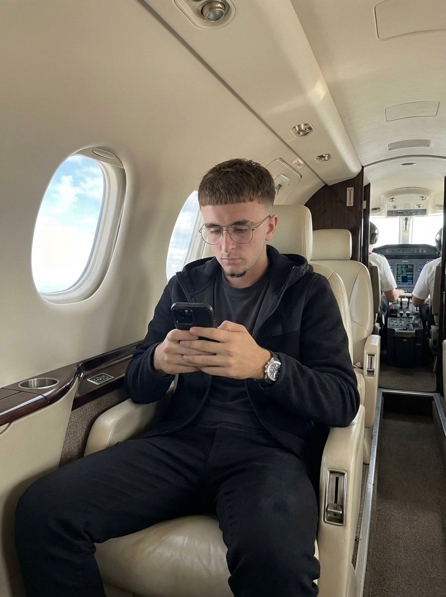 Erstellen Sie ungeplante POV-Bilder in Privatjets und Yachten, die wie echte iPhone-Fotos aussehen – keine Werbung, kein inszenierter Luxus-Content.